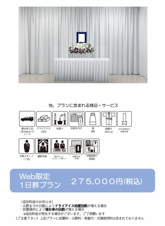 ※こちらは1日葬の場合のプラン代差し引き対象外となっております