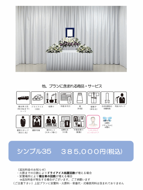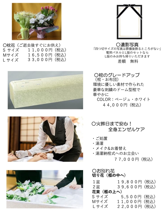 最後の大仕事を終えた故人様に、安らかなお顔でご家族に会っていただきたいという私の想いから、そしてご遺族様多数の「よかった」というお声から、セットプランに加えさせていただいております